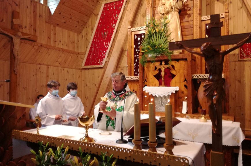 11 czerwca w uroczystość Najświętszego Ciała i Krwi Chrystusa w naszej parafii odbyła się procesja do czterech ołtarzy. O godz. 10.00 o. Antoni Kluska przewodniczył Eucharystii, a po niej udaliśmy się na plac kościelny, aby oddać cześć i uwielbić Boga w Najświętszym Sakramencie.